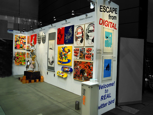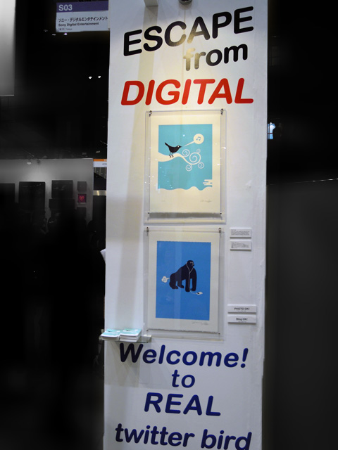 そして、最後は会場の通路側にあるtwitter’s birdの鳥をデザインしたサイモンオ・キシレイが初めて手掛けるシルクスクリーン[bird on a bunch]が話題になった。本作品はすべて完売。
